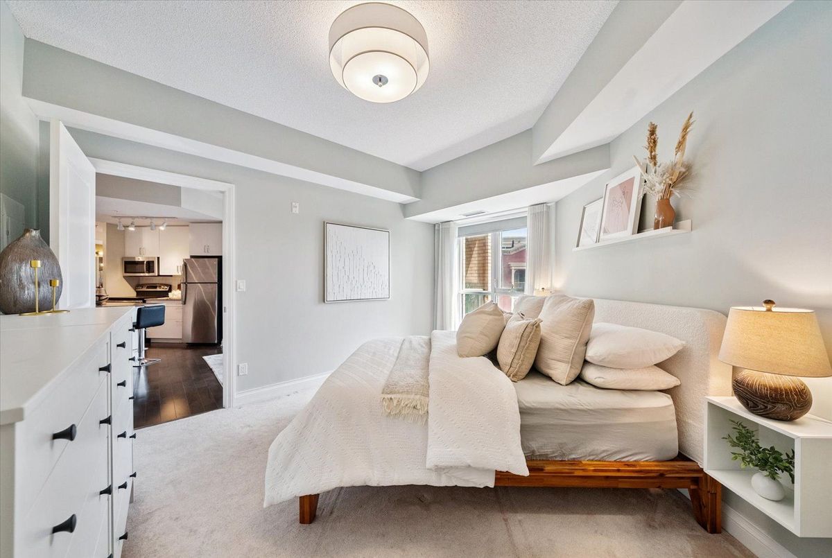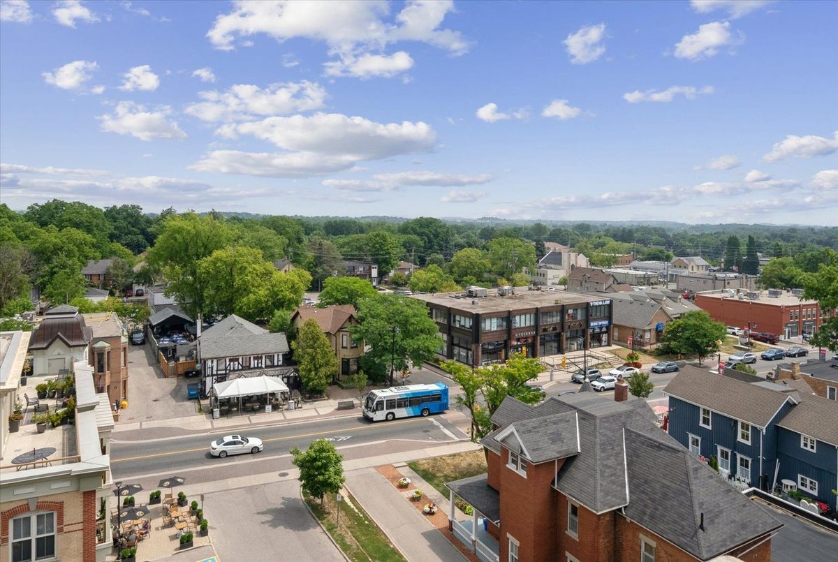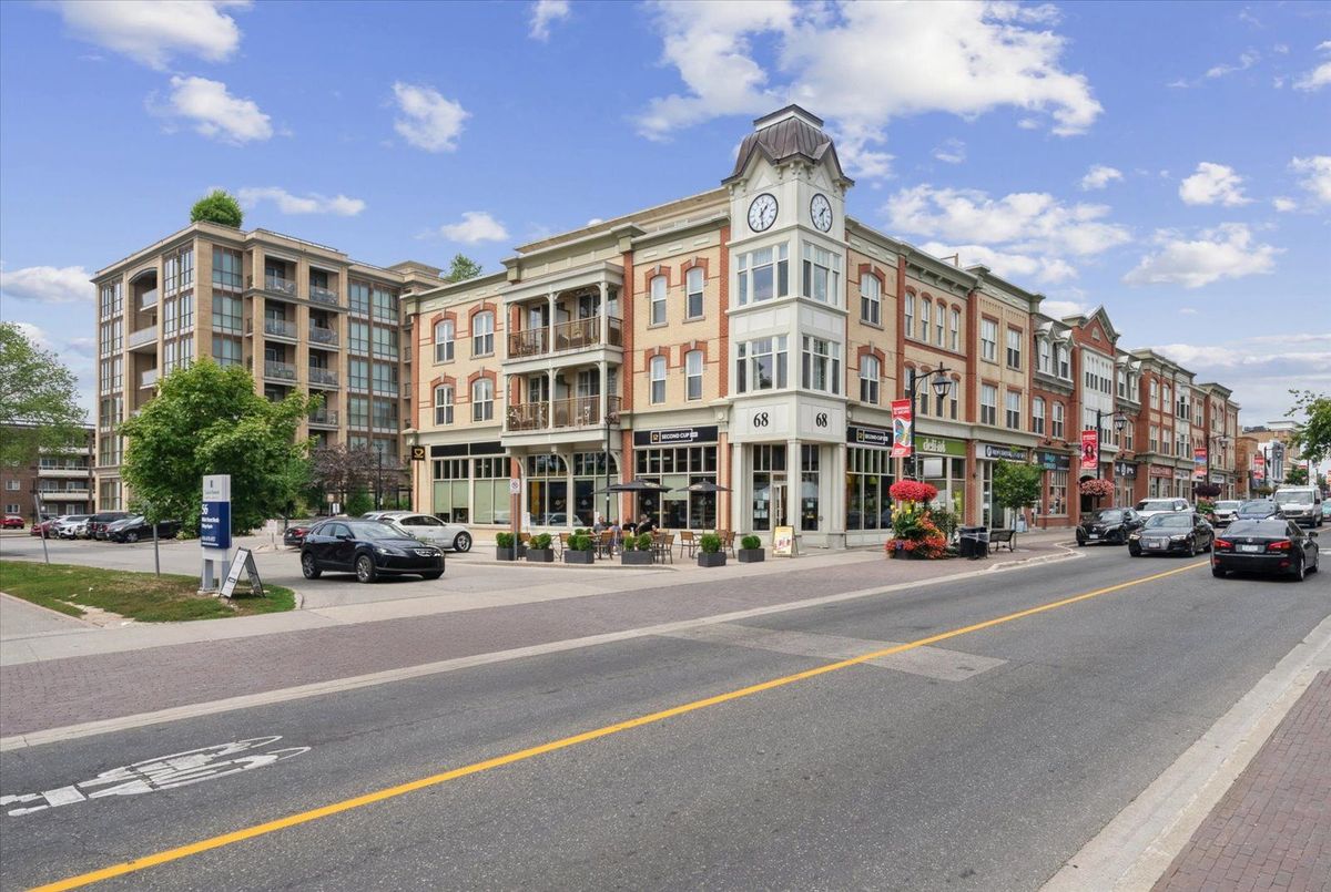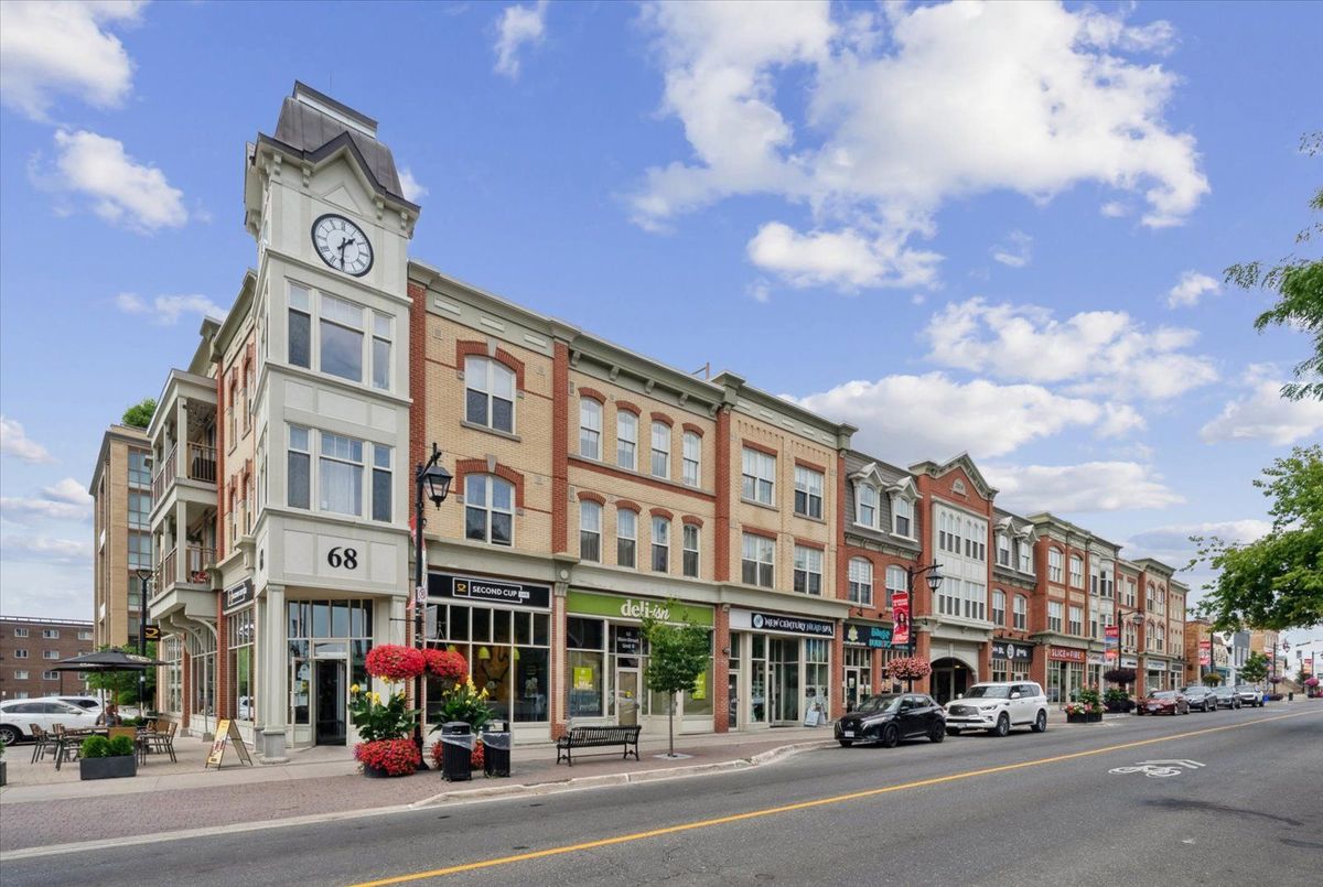 Experience the charm of Main Street living in this bright and stylish boutique condo, where modern design meets small-town warmth. With soaring 9-foot ceilings, southern exposure, and an open-concept layout, this suite offers both sophistication and comfort in one of Markhams most desirable communities.Ideally located in the heart of historic Main Street Unionville, youre just steps from cozy cafés, boutique shops, bakeries, restaurants, and scenic walking trails. Spend your weekends enjoying farmers markets, sipping coffee on sunny patios, or taking peaceful strolls by Toogood Pond all just minutes from your door.The modern kitchen features stone countertops, a breakfast bar, and stainless steel appliances, opening seamlessly to the bright living and dining area. Step onto your private balcony to take in beautiful southern views and glowing sunsets the perfect spot to unwind at the end of the day.The spacious primary bedroom offers a large window, walk-in closet, and a spa-inspired 4-piece ensuite, combining elegance with everyday comfort. Residents also enjoy access to a rooftop terrace with gardens, patio seating, and BBQs, an unbeatable feature for entertaining or relaxing outdoors.For commuters, the Unionville GO Station is just minutes away, offering easy access to downtown Toronto while allowing you to return home to the peaceful charm of Main Street living.This boutique condo captures the perfect balance of lifestyle and location offering modern luxury, walkable convenience, and a community youll love to call home.