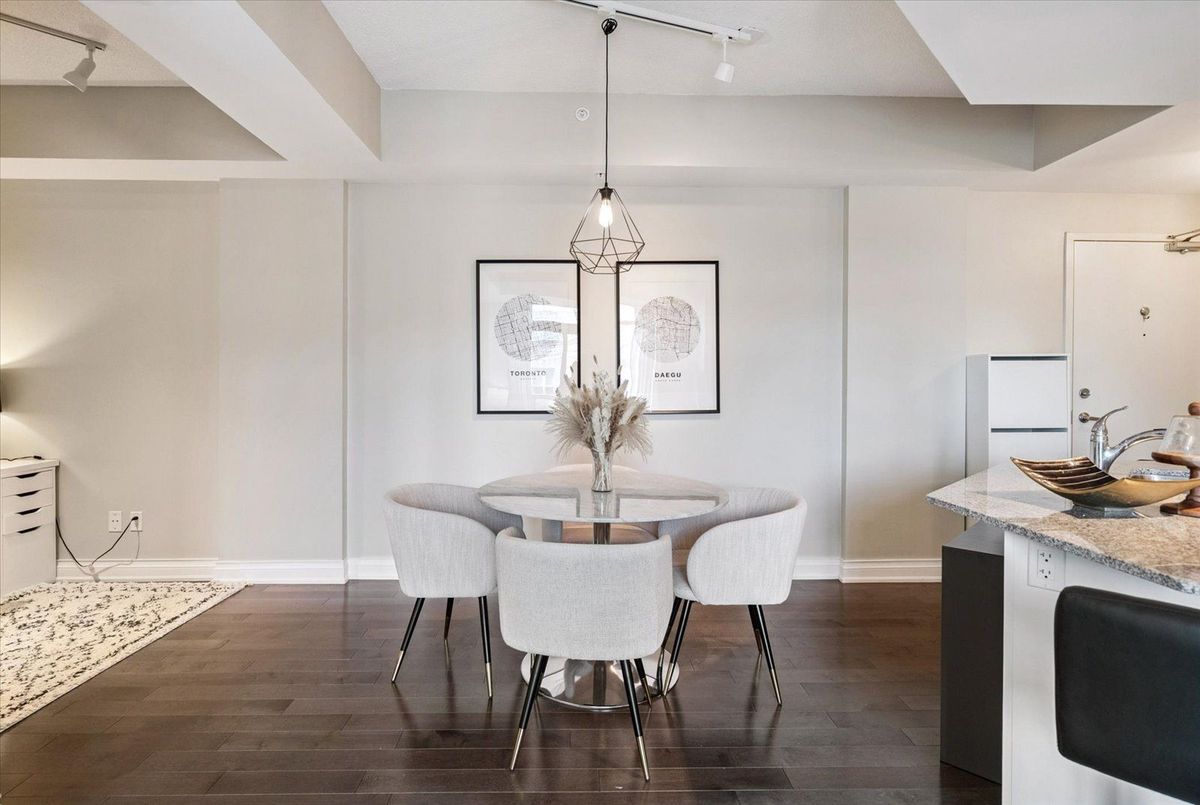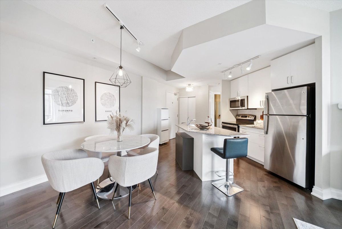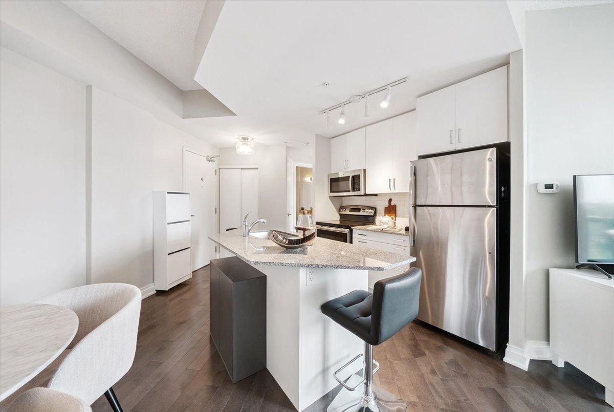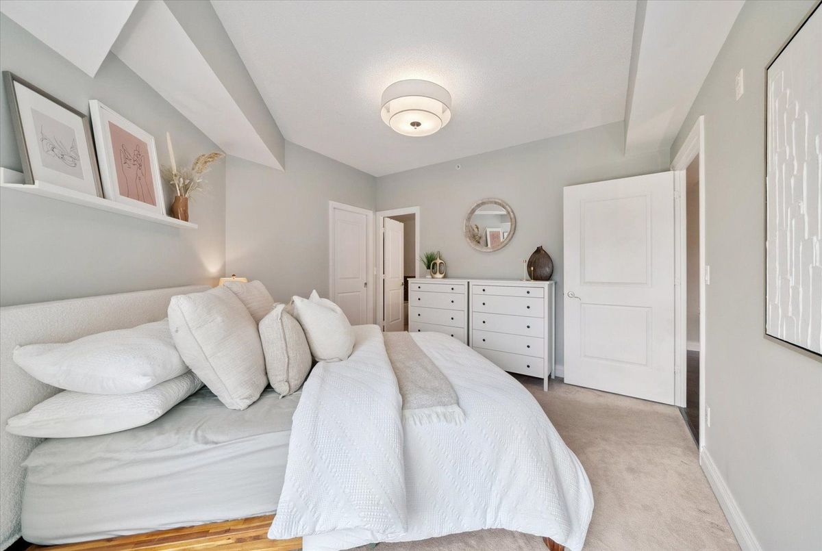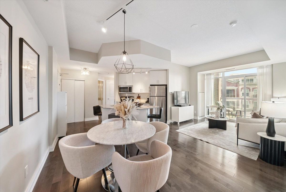 Experience the charm of Main Street living in this bright and stylish boutique condo, where modern design meets small-town warmth. With soaring 9-foot ceilings, southern exposure, and an open-concept layout, this suite offers both sophistication and comfort in one of Markhams most desirable communities.Ideally located in the heart of historic Main Street Unionville, youre just steps from cozy cafés, boutique shops, bakeries, restaurants, and scenic walking trails. Spend your weekends enjoying farmers markets, sipping coffee on sunny patios, or taking peaceful strolls by Toogood Pond all just minutes from your door.The modern kitchen features stone countertops, a breakfast bar, and stainless steel appliances, opening seamlessly to the bright living and dining area. Step onto your private balcony to take in beautiful southern views and glowing sunsets the perfect spot to unwind at the end of the day.The spacious primary bedroom offers a large window, walk-in closet, and a spa-inspired 4-piece ensuite, combining elegance with everyday comfort. Residents also enjoy access to a rooftop terrace with gardens, patio seating, and BBQs, an unbeatable feature for entertaining or relaxing outdoors.For commuters, the Unionville GO Station is just minutes away, offering easy access to downtown Toronto while allowing you to return home to the peaceful charm of Main Street living.This boutique condo captures the perfect balance of lifestyle and location offering modern luxury, walkable convenience, and a community youll love to call home.